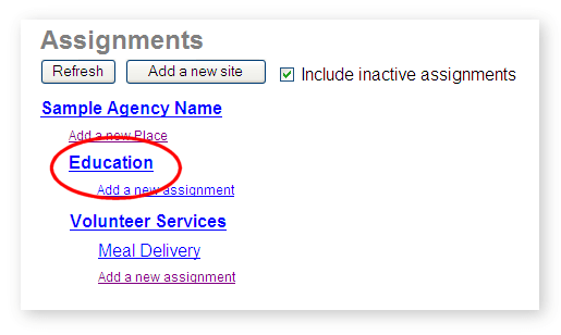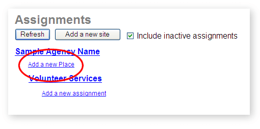You can optionally organize your volunteer assignments according to Sites and Places.