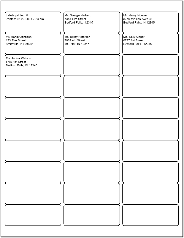 This stock report creates mailing labels for Coordinators you track in Volgistics. It works with sheet fed labels for laser or ink jet printers, such as Avery 5160 label sheets.
