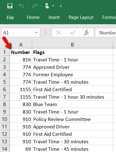 When records appear on their own worksheet, the first column of these additional worksheets always contains the volunteer record number as shown here: