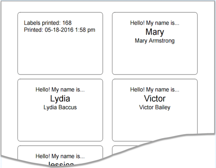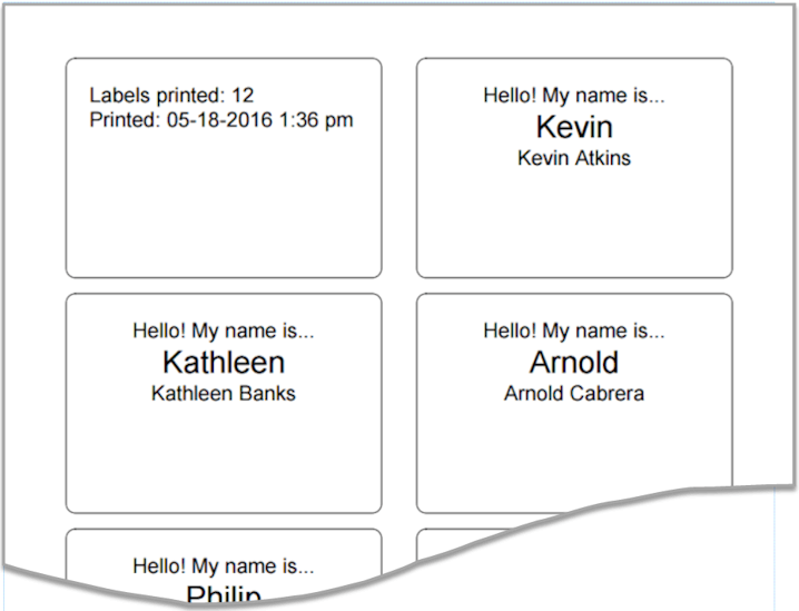 Here are examples of the stock Name Tags reports: