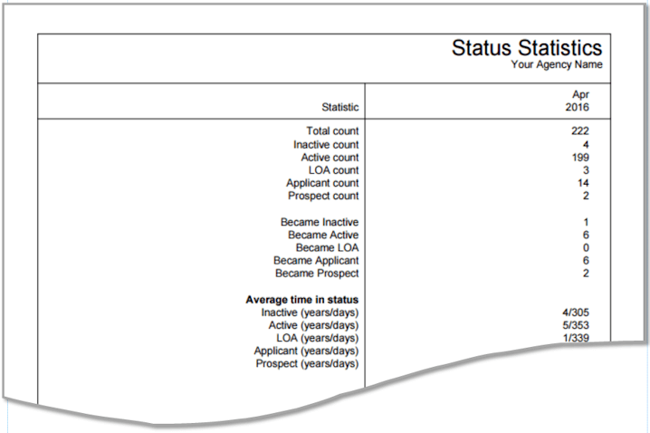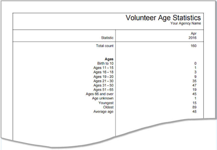 Statistics reports are designed to help you get data on things such as volunteer retention and demographics. Volgistics comes with two stock Statistics reports. You can learn more about these below: