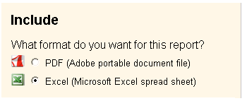 Volgistics reports (other than Excel Spreadsheet reports) are designed primarily for producing printable PDF files, however most can also be used to produce Excel spreadsheet files by choosing Excel on the Include page when you run the report.