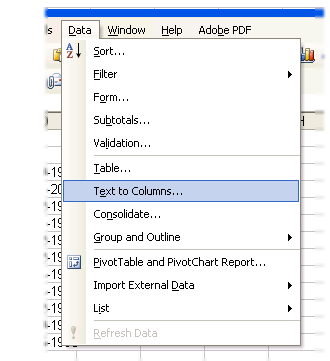Select the entire column by clicking on the column heading. Be sure to select only a single column as shown here (selecting more than one single column will lead to problems):