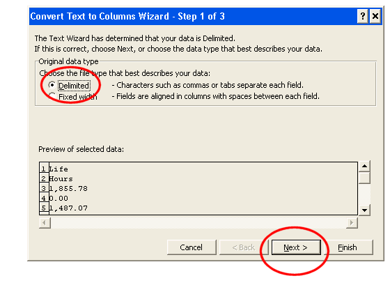 In the Convert Text to Columns Wizard Step 3 of 3 window, click the Finished button.