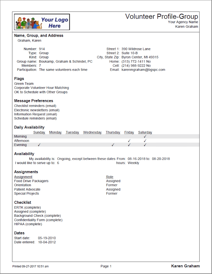 Volunteer Profile Report - Volunteer Profile-Group (stock)¶