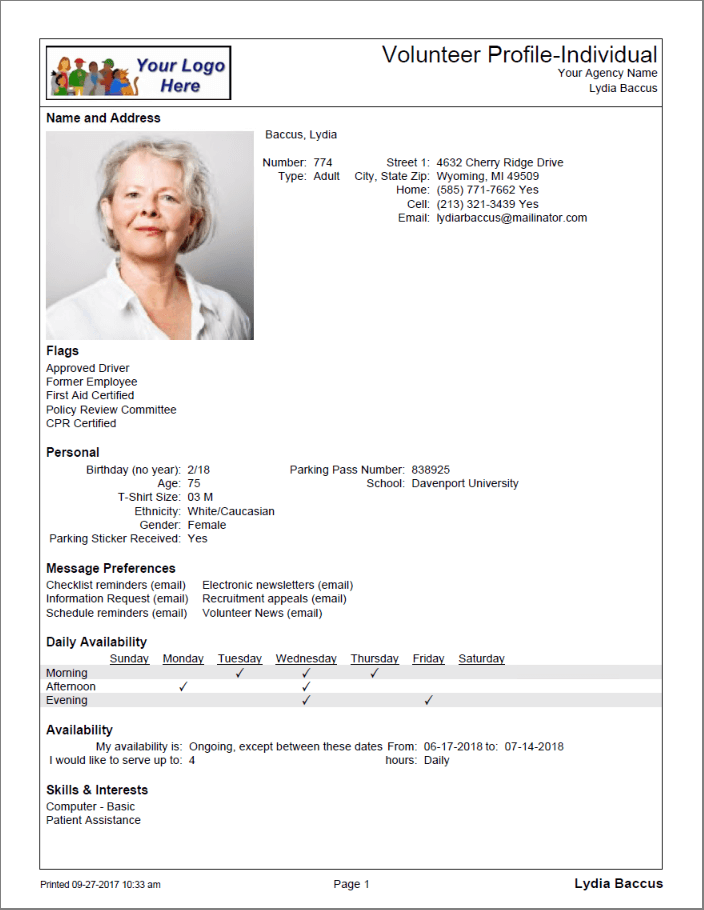 Volunteer Profile Report - Volunteer Profile-Individual (stock)¶