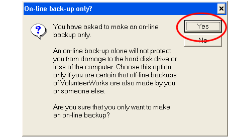 An Online backup only? confirmation box will appear. When it does, click the Yes button to start making the backup.