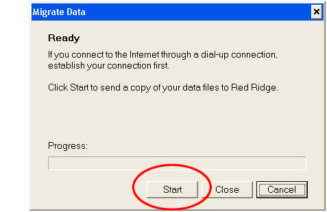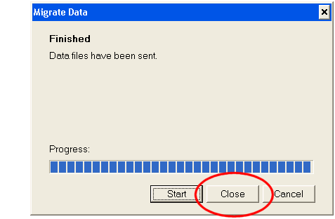In the Data migration dialog box, click the Start button to start the file transfer.